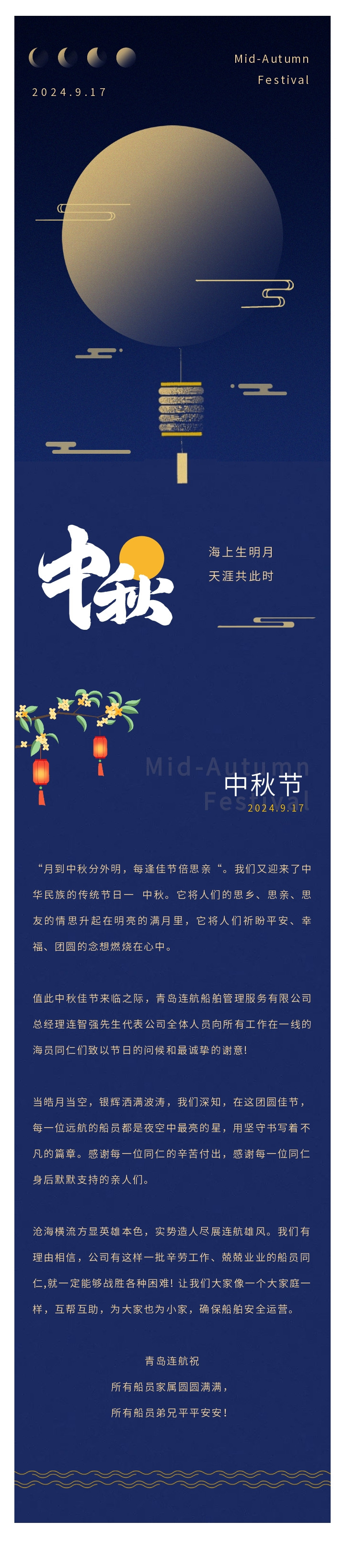 如“月”而至,情滿中秋 | 青島連航向堅守一線的全體海員致敬!